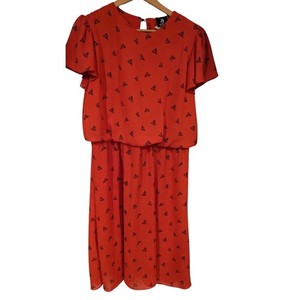 Vintage Maree rotes Kleid schwarz Dreieck Muster Rüschenärmel Midikleid