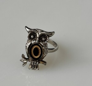Vintage silberfarbener Eulenring mit oval verziertem Bauch