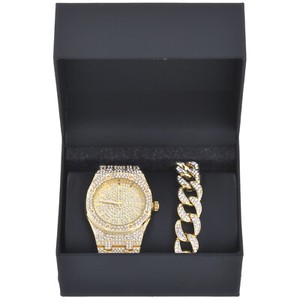 Herrenuhr Rapper komplett vergoldet und kubanisches Armband SET WM 8608 G