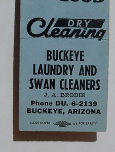 1950er Buckeye Wäsche- und Schwanenreiniger Brodie Buckeye AZ Maricopa Co Streichholzschachtel CHF 3,54