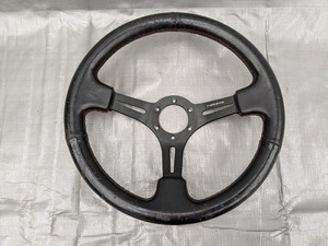 350MM NRG RST-022R-Y 6-HOLE BLACK LEATHER ARROW 3-SPOKE STEERING WHEEL