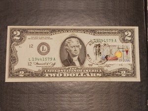 1976 2 $ DOLLARSCHEIN MIT USPO-MARKE VOM 13. APRIL 1976 ~ SAN FRANCISCO, CA