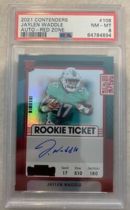 2021 Contenders Red Zone Auto Jaylen Waddle PSA 8 Rookie Ticket. Rookie.