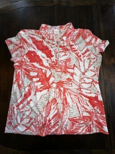 Weekends by Chico’s sz 3 / XL Coral White Beige ¼ Zip SS Top Polo Shirt EUC