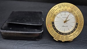 Vintage Shreve & Co., Luxor S.A. Swiss Weltreisewecker mit Etui - funktioniert