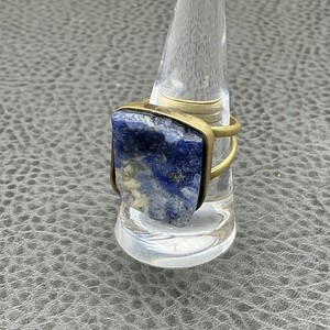 Handwerker Ring blau Edelstein Gr. 9 verstellbar messingfarben quadratische Einfassung klobig Boho