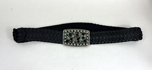 Vintage Black Metal with Embedded Stone Buckle, Stretch Belt