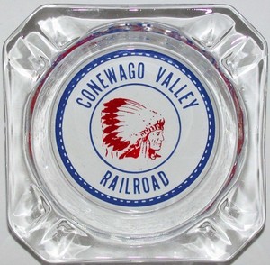 Vintage Glas Aschenbecher CONEWAGO VALLEY RAILROAD Indianer Bild Pennsylvania NRMT+