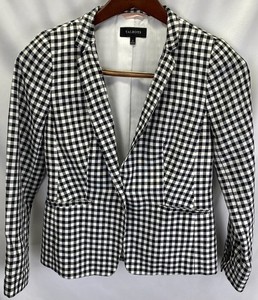 Talbots schwarz & weiß Gingham gefüttert Leinen Blazer Anzug Jacke Kerb Revers Größe 2