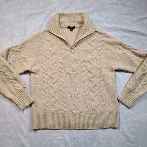 J Crew Pullover mit Zopfmuster Gr. S Merinowolle Alpaka Mischung Viertelreißverschluss beige CHF 23,04