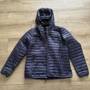 Eddie Bauer Jacke Damen M lila Daunen Puffer Mantel EB650 Kapuze leicht