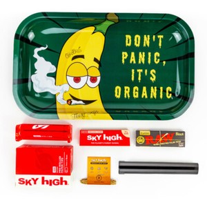 Metal Rolling Tray Banana Combo Bundle Kit RAW, SKY HIGH Gift Pack Set #8