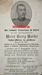 Sterbebild WWI Infanterist 2. Komp. Kö.-Bay. Inf. Regt. 2 Luneville Frankreich