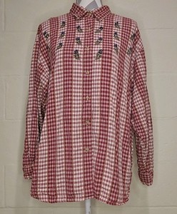 Vintage Cabin Creek Damen Button-Down Kragen bestickt rot/weiß kariert GR. 2X