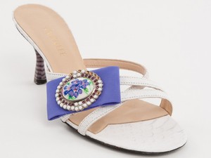 Neu Vivien Lee weiß Python Leder mit Brosche Made in Italy Schuhe Gr. 39 US 9