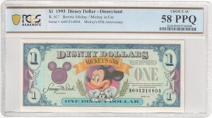 1 $ 1993 Disney Dollar Fliege Mickey/Mickey im Auto PCGS 58PPQ