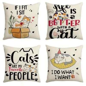 4er Pack Kissenbezüge für Katzenliebhaber - NUR Kissenbezüge