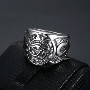 Herren Ägyptischer Evil Eye of Horus Ra Ring Silber Edelstahl Größe 7-15 Geschenk