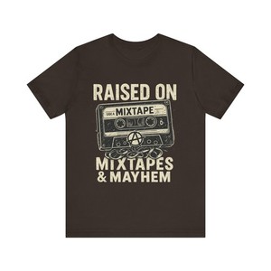 Raised on Mixtapes and Mayhem T-Shirt Retro Cassette Punk Rock Grunge Tee