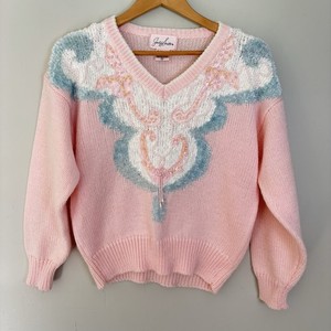 Vintage Bramble Lane roter Strick Schmuck Schleife Pullover-Größe M-Seide/Angora Mischung-Cottage CHF 36,17CHF 40,19