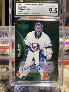 21-22 U.D Metall Universum Autogramm #29 Ilya Sorokin Auto grün Holo 8/10 CSG-9.5