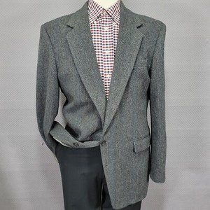 Vintage Traditionalist Follys Herren Tweed Sport Mantel Blazer Grau Fischgrät 44R