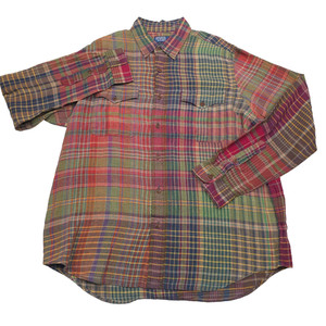 $ 198 Polo Ralph Lauren Madras kariertes geknöpftes Leinenhemd für Herren Größe XL