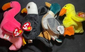 TY BEANIE BABY SET 4 VÖGEL JAKE STOCKENTE PINKY FLAMINGO WEISSKOPFSEEADLER QUACKSALBER ENTE CHF 20,20