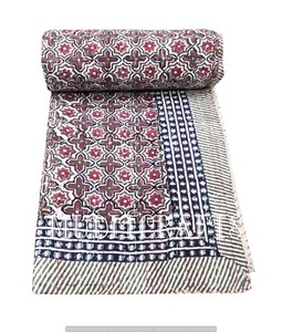 Indian Cotton Hand Block Print Kantha Bedspread handmade Quilt Throw Blanket