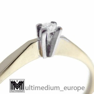 Modernist 585 Weißgold Gelbgold Ring Diamant Solitär diamond 14ct