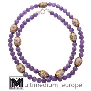 Cloisonne Halskette Collier Emaille Silber Amethyst silver enamel necklace