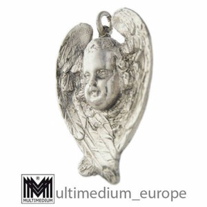 Großer vtg Silber Engel Anhänger Herz Tracht silver pendant angel