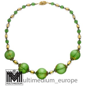 Vintage Murano Glas Collier Halskette Grün Gold hohl hollow green glass necklace
