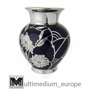 50er Jahre Thomas Porzellan Silver Overlay Vase Silber Blau