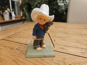 Vintage 1979 Wilton Tortenaufleger kleiner Cowboy mit Steckenpferd Stock Pferd Kunststoff 5"