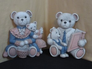 Homco Wandtafeln #7604 - Teddybär Familie, 2er Set
