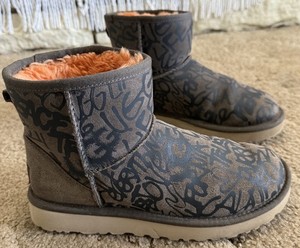 UGG Classic Street Graffiti Mini Boot Wildleder Damen 7 Stiefeletten Slipper braun
