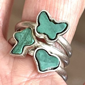 Türkis Mid Century Pilz Ring Set Gr. 6 60er vorsteckbar Vintage Sterling 1