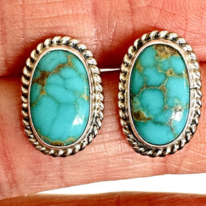 Natürliche Türkis Ohrstecker Navajo Sterling Silber 925 Pfosten 10 x 15 mm signiert