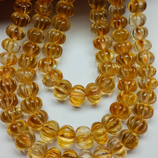 Natural Citrine Quartz Carved Muskmelon Pumpkin Shape 8-11mm Loose Beads