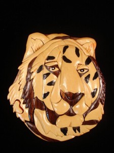 Handgefertigtes 3D Intarsien Holzkunst TIGER Puzzle Holzkiste Wildtier Raubkatze