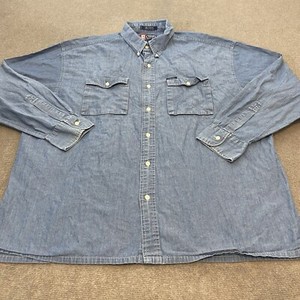 Vintage Chaps Ralph Lauren Chambray Hemd Herren Gr. XL Blau Oversized 90s Fit Boxy