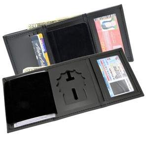 Perfekte Passform Abzeichen Geldbörse Universal Oval Ausschnitt Doppelfaltung Schwarz Leder Polizei CHF 30,45