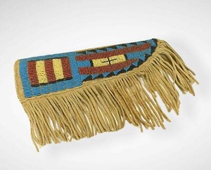 Old American Buffalo Hide Sioux Beaded Tobacco Pipe Bag 6 x 32'' Colored NPB14