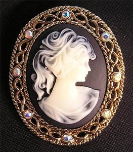 BROSCHE/ANSTECKNADEL/ANHÄNGER Dame mit Strass UNGEWÖHNLICHE KAMEE