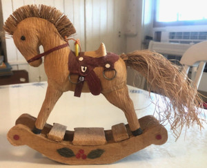 Vintage Weihnachten 7" Schaukelpferd aus Schaumstoff & Bast leicht + gut gemacht!
