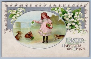 AK Ostern 1914 Mädchen füttert Hasen Hasen