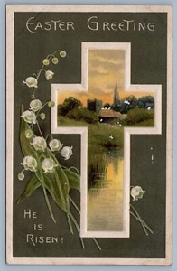 Easter Greetings He Is Risen! Cross Religious Postcard Christian