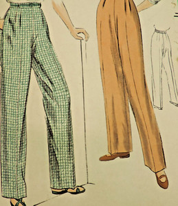 1940s Vogue Pattern #6822 Narrow Pants/Peddle Pusher W: 26" H: 35 Complete