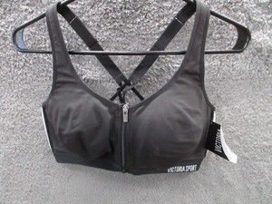 NEU Victoria Secret Sport-BH Knockout vorne geschlossen schwarz mit silber 36DD